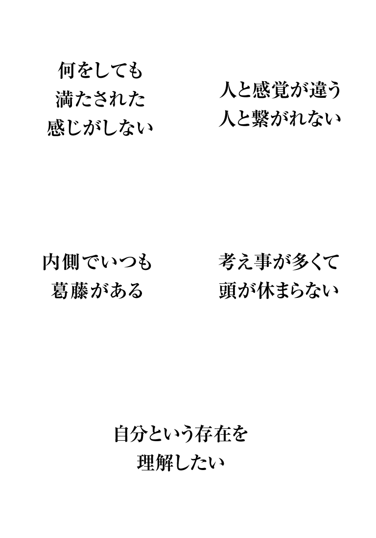 思考の整理。現象の原理。感情の受け入れ。自己受容の本質。女性性と男性性の統合。思考、心、からだ、などいろいろな角度から満たされる生き方へと